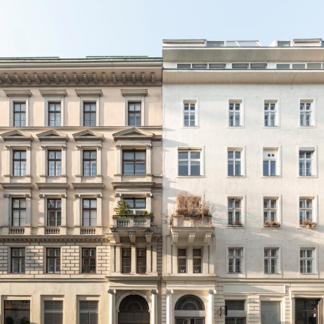 During my forays through the city, one detail of Vienna’s many beautiful old houses in particular aroused my interest: the contrast between the presence and absence of ornaments and decorative stucco. You don’t notice them immediately, but if you walk through the streets with open eyes, you will find them, the unequal pairs of buildings.